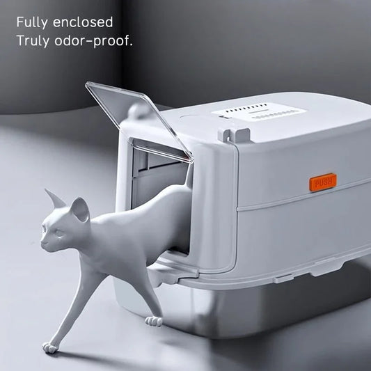 Cat Litter Box Fully Enclosed Stainless Steel Cat Litter Box Anti-splash Heightening Pet Supplies Pet Items Litter Box for Cats