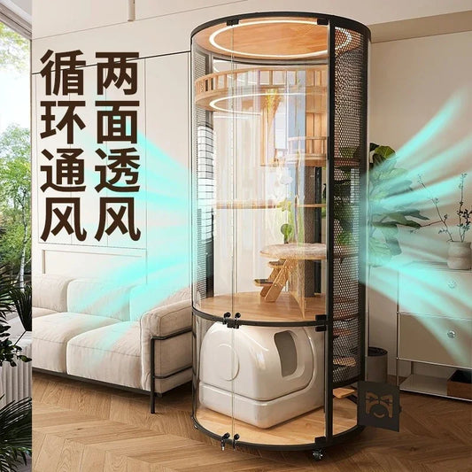 Cat villa solid wood panoramic glass luxury large space cabinet cage can put smart toilet three-story nest house for home use