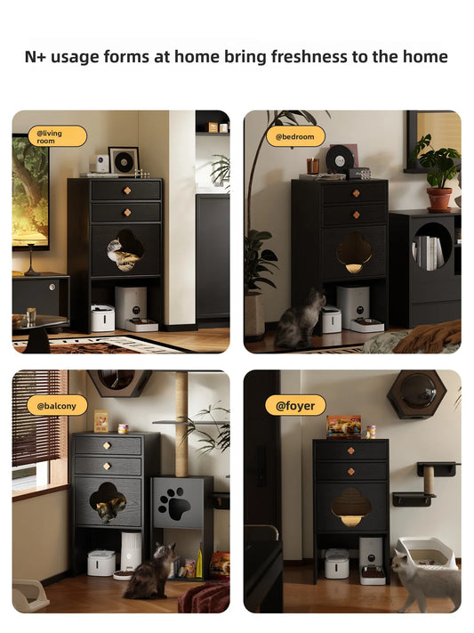 Wooden Cat Bed Cabinet with Storage Drawers for Cats Small Space Living Room Balcony Pet Furniture Organizer for Small